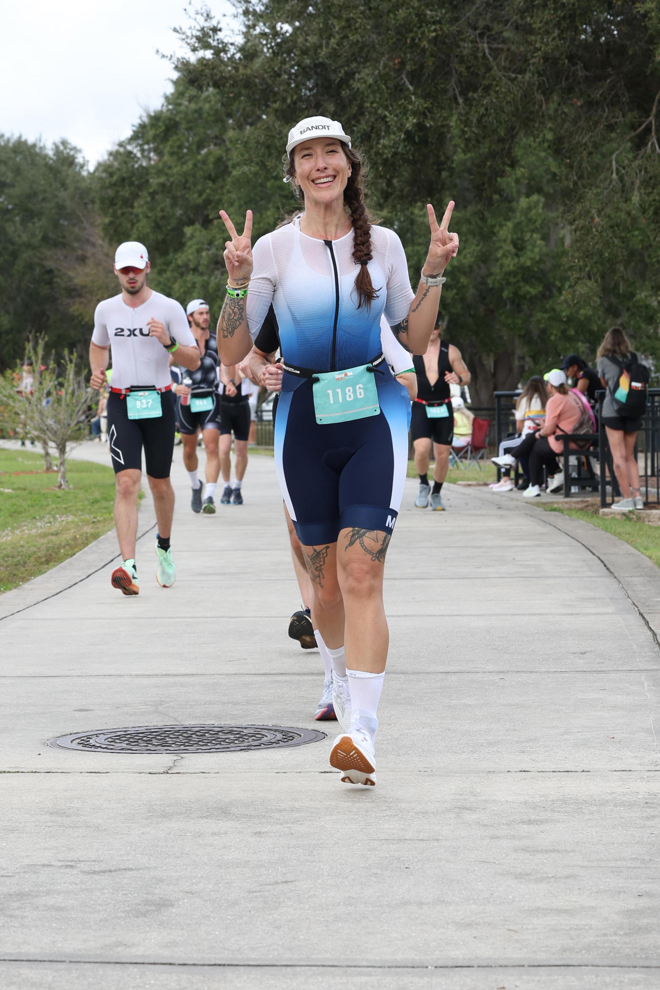 At some point, it got HOT. It was 70 something and the course wasn’t particularly shaded – I’m so grateful for Annee’s advice to put ice in my suit because without it I don’t know that I’d survive.
