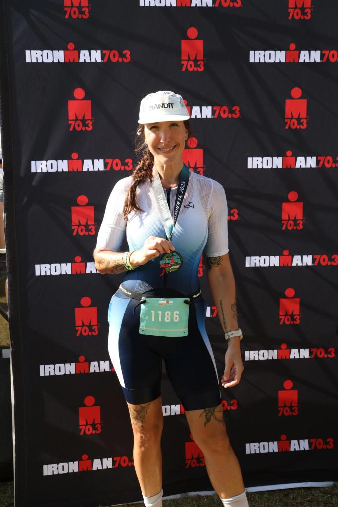 This 70.3, my first, was very outside of my comfort zone in a way that I hadn’t allowed myself to get in the past few years. I had a secret (not so secret) goal of finishing under 6 hours, but wasn’t sure if that was something I could execute, particularly on a warm day on a hilly course.