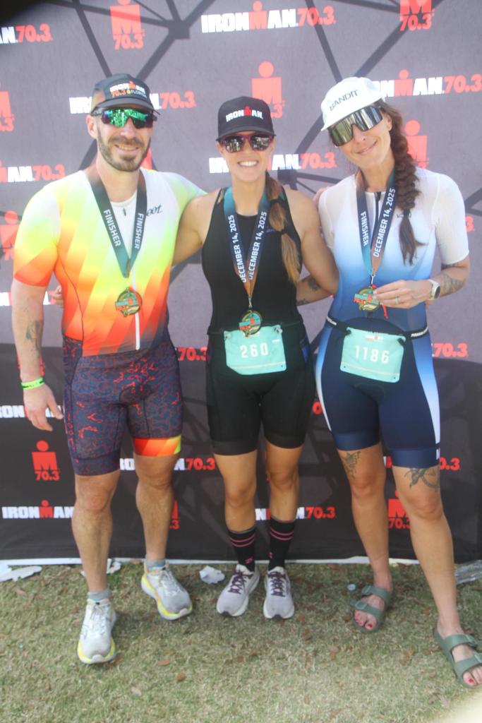 Also super grateful for my fellow ironpeople on the course who were super kid, the really enthusiastic volunteers, and whoever set up the sprinkler and the hoses that gave me life.