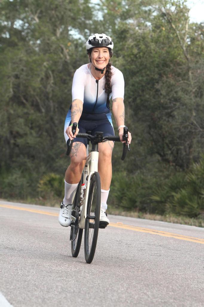 This was longer than I had allotted myself time for and I did that on purpose because I knew I saved some time on the swim. I didn’t dilly dally but I also gave myself a second to eat something (I can’t remember what) and drink some tailwind before getting on my bike. I got a surprise bumping into Amanda and Drew coming out of the water, and that gave a big boost to morale! There was an absolute clusterfuck on the mount line as I had expected and nearly crashed into someone who seemed to have some trouble holding their line but he was very nice and apologized later and we all made it out unscathed. When (not if) I do this again, I’ll put my shoes on closer to the mount line to not have to clickety clack for a 10th of a mile.