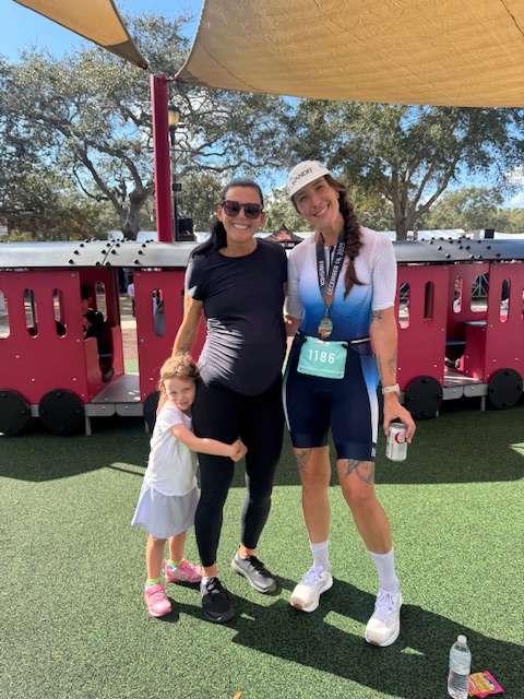 Omg T2. This was the best. I saw Amanda and Drew again coming in and when I got to my bike rack, I saw my whole family (including my dad and my uncle who just flew in from Poland!) and Dina and Leo. It gave me such a boost, particularly because I wasn’t expecting them to be camped out by the bike! I got some forehead kisses from Sloane and high fives and asked the strangers next to me to calculate how fast I’d have to run to get under 6.