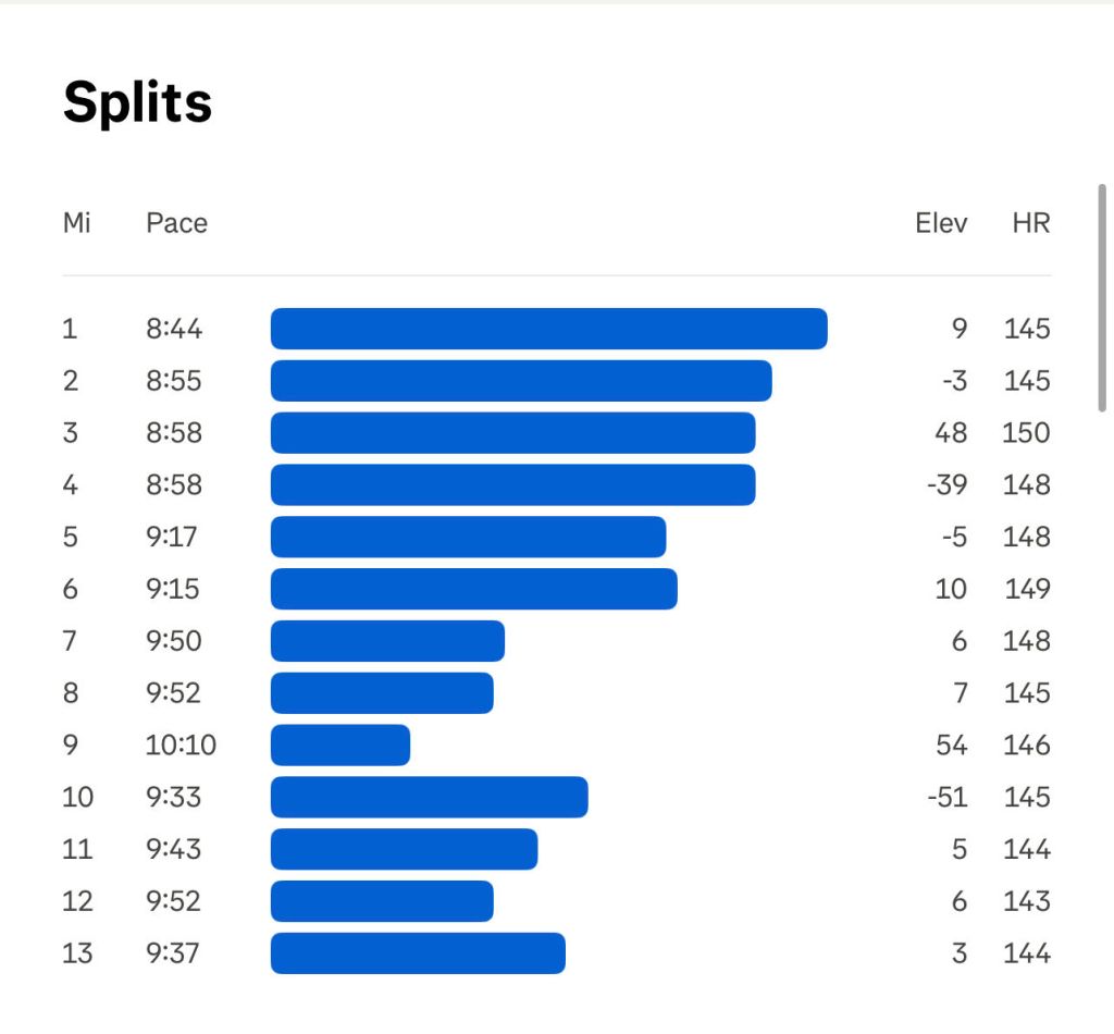 Honestly with the exception of the last 10 miles which felt like it lasted 10 weeks, this went by super fast and I was pinching myself at how fast I was going with low HR and low seeming effort. My bike fit felt like the biggest problem, not legs or cardio.