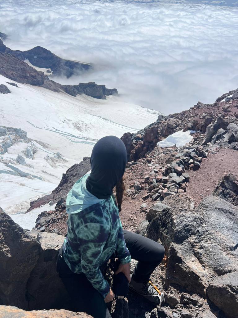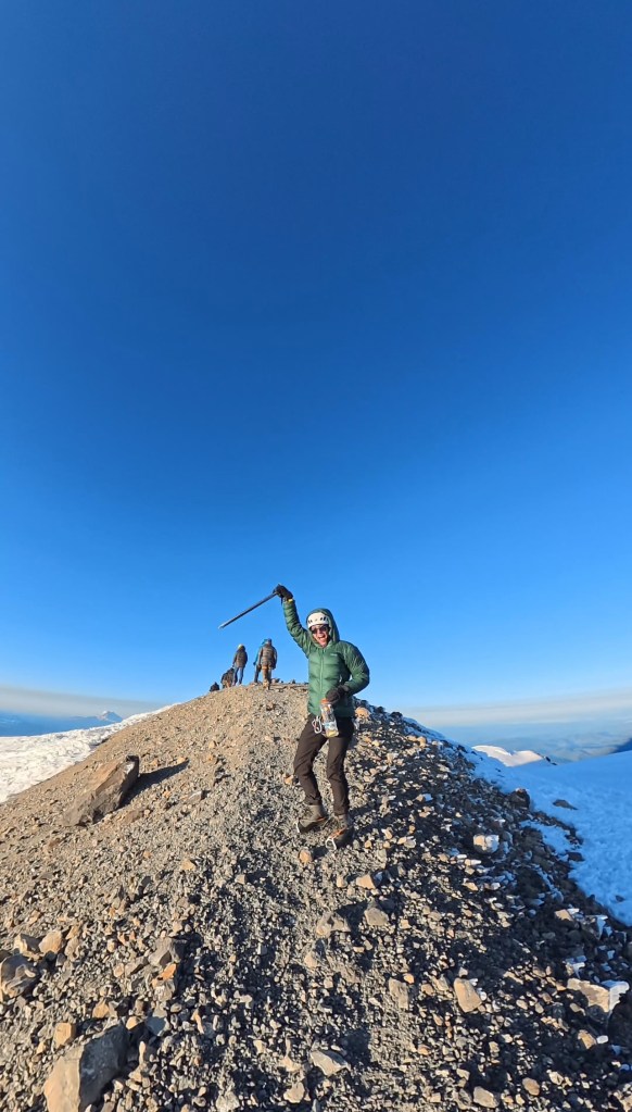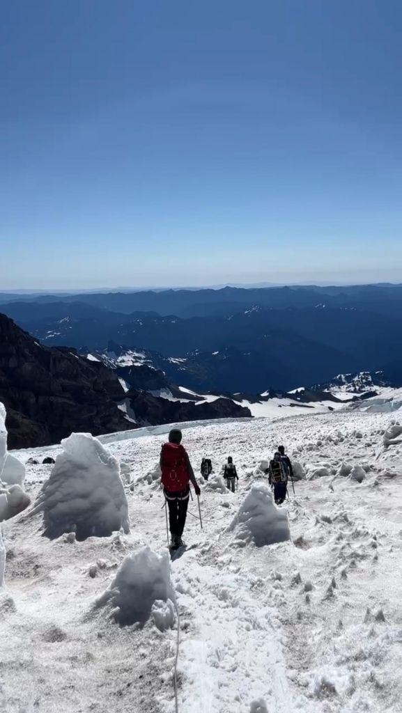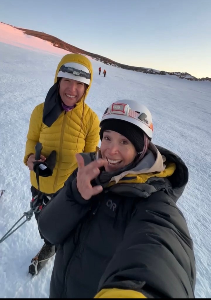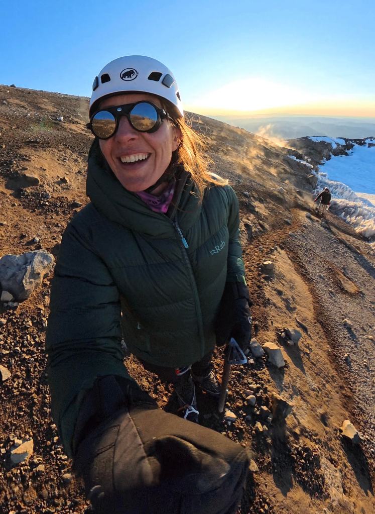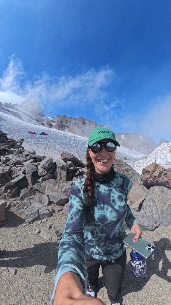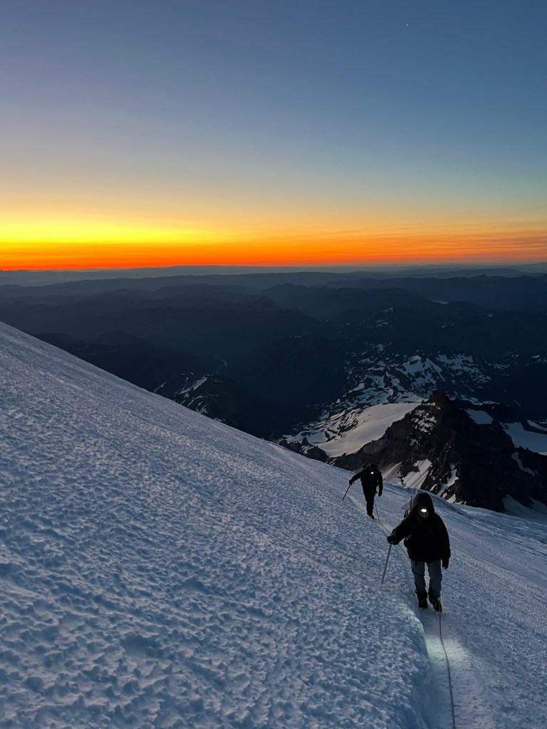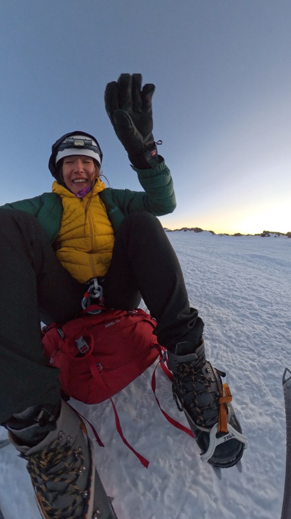 The sun finally started to rise and gave way to a sunrise that I won’t dishonor by trying to describe it with words. We could see the other prominent Pacific Northwest volcanoes- Adams and Helens – along with the Tattoosh range and what felt like thousands of layers of ice and sky and magic. I felt small and infinite in the same breath – and undone completely by the joy of it.