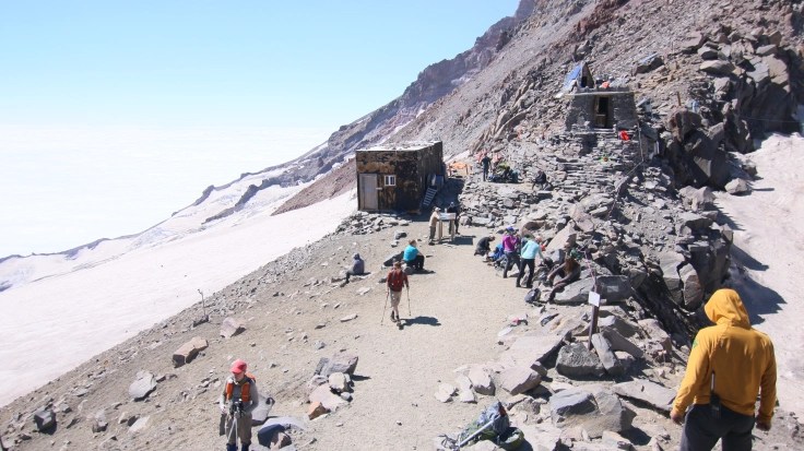 We woke up pretty well rested to bluebird skies on day two, a very welcome change from how it looked in Paradise when we set off for Camp Muir the day before. I was also thankful to have been spared any altitude related malaise up to this point – my theory of hydrating/carb loading like you’re going to run a marathon to thwart altitude sickness seems to have proven correct once again.
