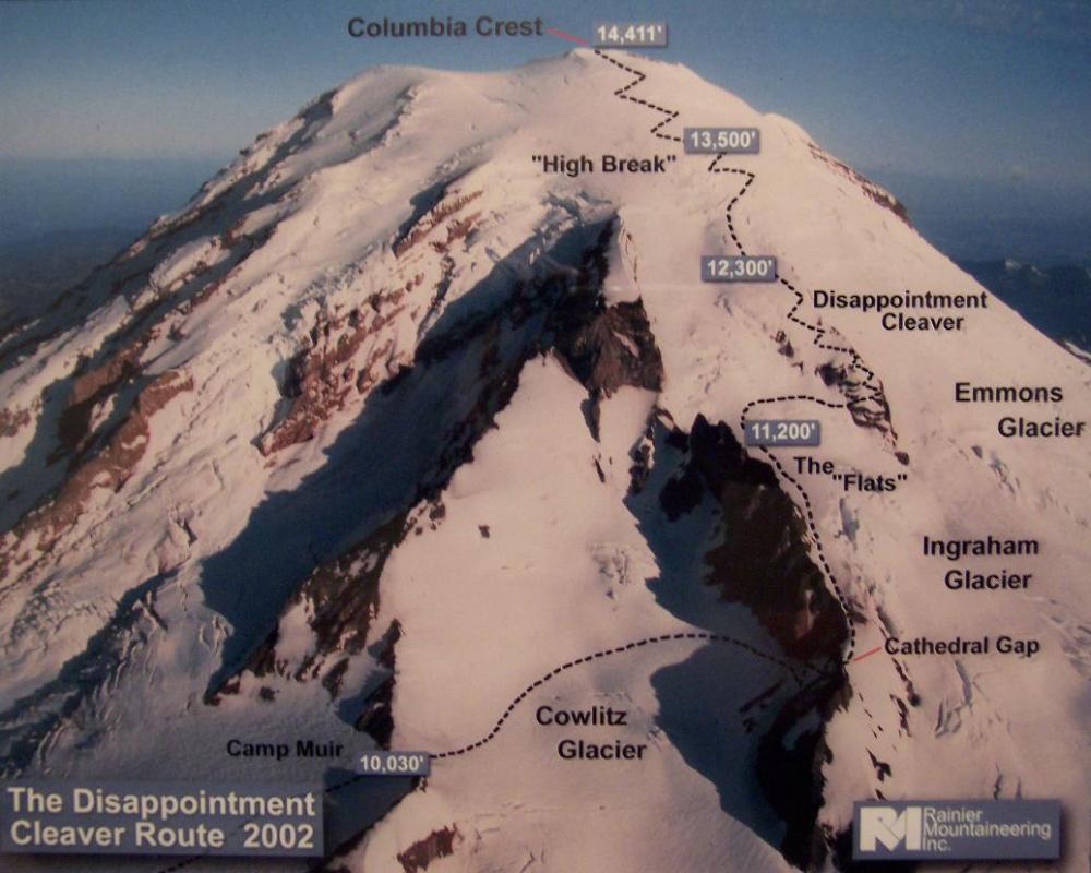 Then came time for expectations. We’d be keeping a comfortable but consistent pace of 1,000 vertical feet per hour, breaking every 1-1.5 hours, with the longest stretch being Disappointment Cleaver (named because climbers once mistook it for the summit and were disappointed when it wasn’t). If you could not keep up the pace or looked otherwise weary with sloppy footwork, then you’d be told to turn around. The guides expected us to take care of ourselves on break and to be timely – making sure we were efficient and optimizing time to sit down and rest – so they gave us tricks to help, the best of which was packing your snacks in your parka pocket. The last expectation was communication and honesty – if a guide is asking how you’re doing, not only your safety but also the safety of the rest of the group depends on your transparency.