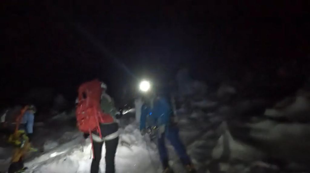 We paused at the top of the flats to take a breath, following instructions to take care of ourselves (parka, food, water, sit down on pack to rest). Unfortunately one of the members of our climbing party had to turn around at this point – grateful he was safe and in good hands with Grace, but wish Mike could’ve continued as his infectious positivity (and excellent mustache!) was such an integral part of our group.