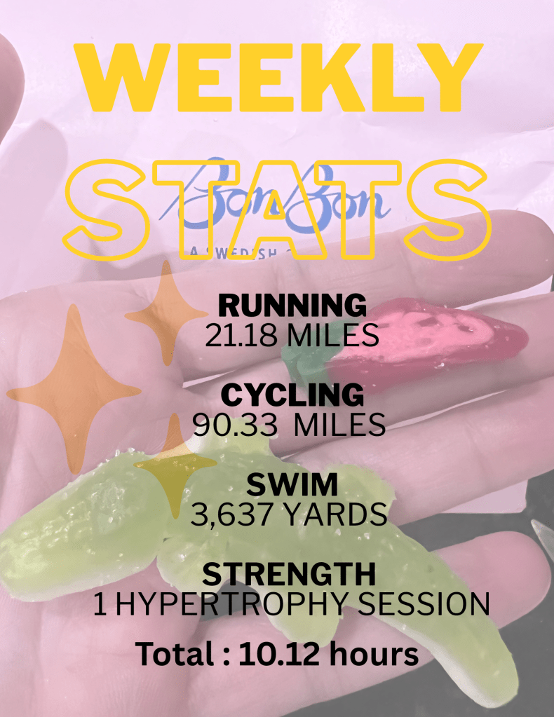 -I’m happy to say that for the first time since I’ve started doing these training logs I can say no. In early recovery, I was told that self-esteem comes from doing esteemable things and the easiest way to build that is by doing the things you say you’re going to do. This isn’t a novel concept, but that specific verbiage is always very impactful to me when deciding whether I’m going to stick to the plan or skip a workout. I was pretty much spot on with my schedule which was one of the big goals this week – getting intentional.
