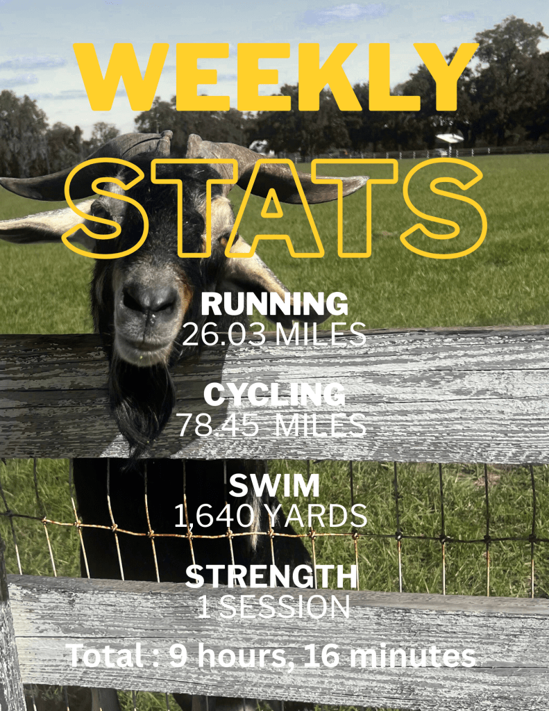 -Finally made it back to sugarloaf! After a very vert-heavy summer, I have slipped into some complacency with flat fast rides, which is still a great stimulus but the 70.3 course is pretty hilly and I’ve been mostly neglecting that part of my training. My brick on Saturday had a lot of elevation gain (2400 ft!) and it was a little rough but felt so great to get it done! We did 50 miles and some change on the bike and I had a really quick OTB run afterwards – it was a nice confidence boost and I held 4 much faster than I’ll need to in December. We also were blessed with kissing goats on the run and really amazing weather. Planning on riding sugarloaf every other week or so until Haines (which is not that many weeks!!)